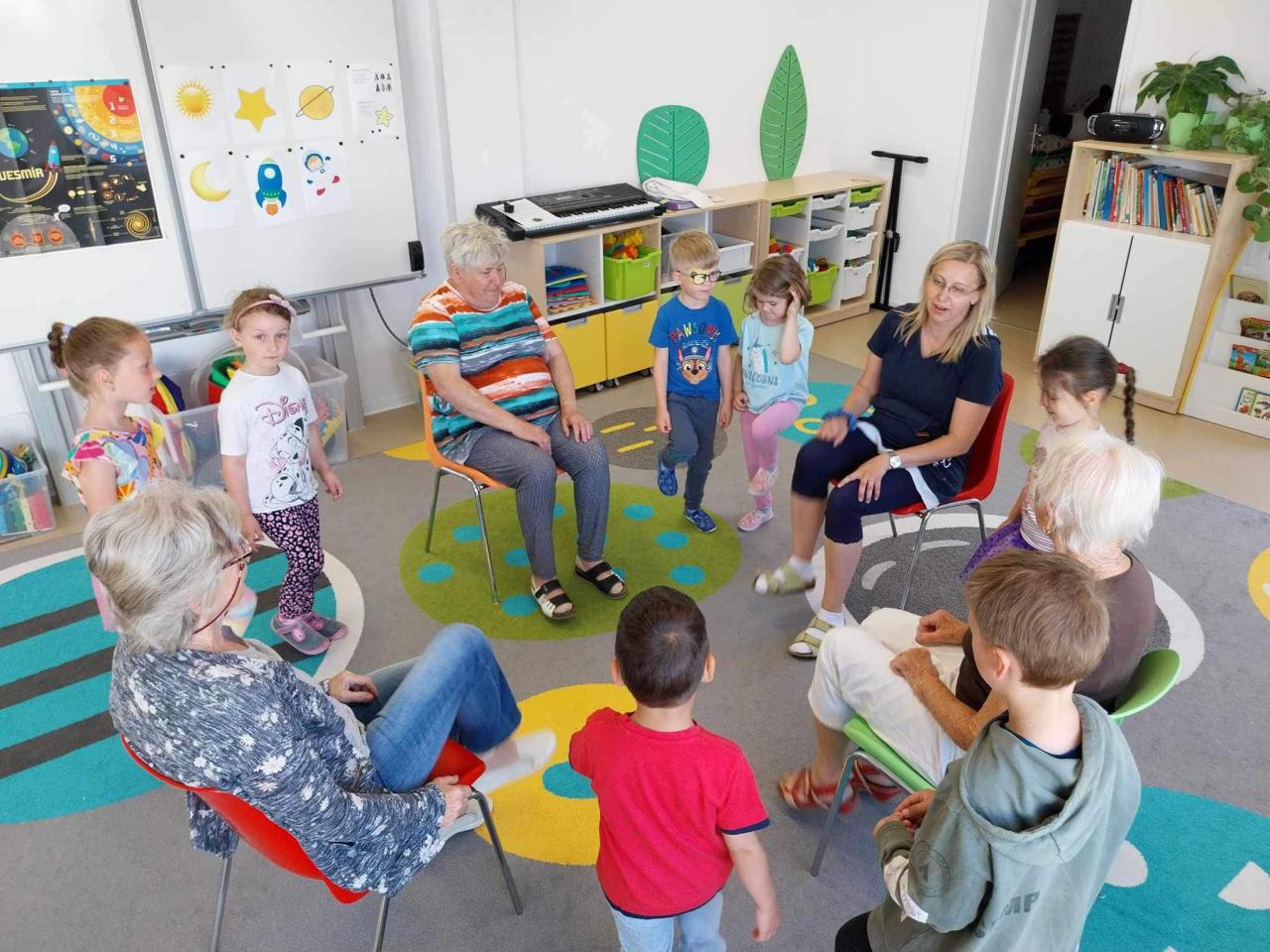 Ve třídě Motýlků proběhlo mezigenerační setkání. Na návštěvu přišly seniorky z KLASu Holasice, povídaly dětem o hračkách, se kterými si hrály ve svém mládí. Na závěr si všichni společně zatančili "Tance vsedě".