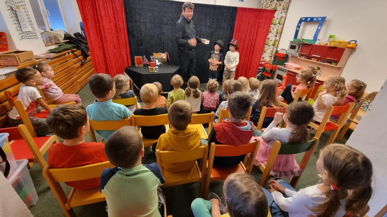 Naši mateřskou školu navštívilo kouzelnické duo Waldini.